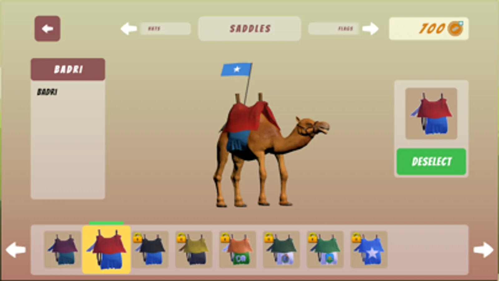 You will be able to customize your characters with hats and boots ,and your camels with flags and saddles of your choosing!