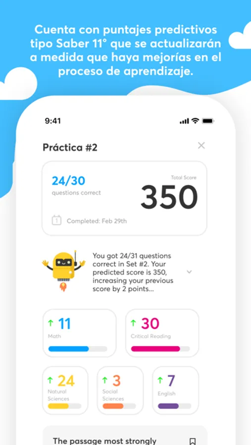 • Contar con acceso a más de 1600 preguntas reales del examen Saber 11°.