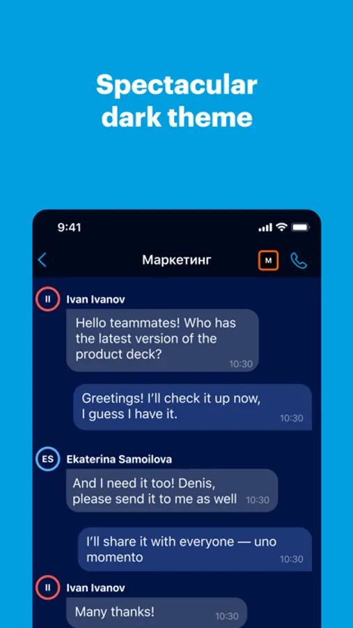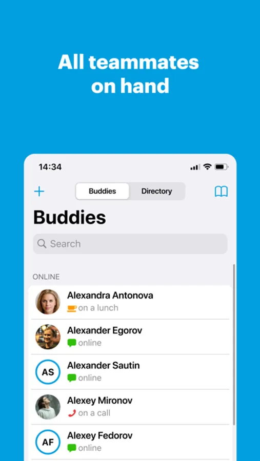 Provides features of calls, instant messaging, corporate dictionary, file transfers, geo-positioning.