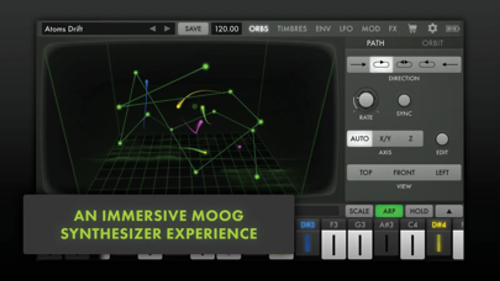 Powered by Moog’s Anisotropic Synth Engine (ASE), Animoog Z empowers you to visually traverse new sonic universes and even create your own! ASE utilizes a novel orbit system to expand the concepts of wavetable and vector synthesis, allowing you to navigate dynamically through the X, Y, and Z axes of sound. Spontaneous sound design with Animoog Z is easy—simply select and drag the orbit path to explore endless sonic configurations.