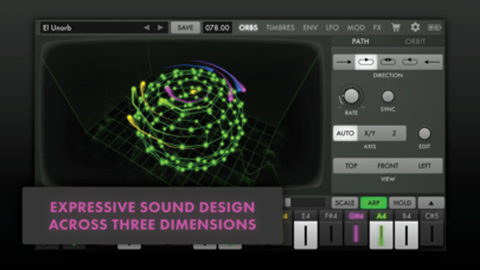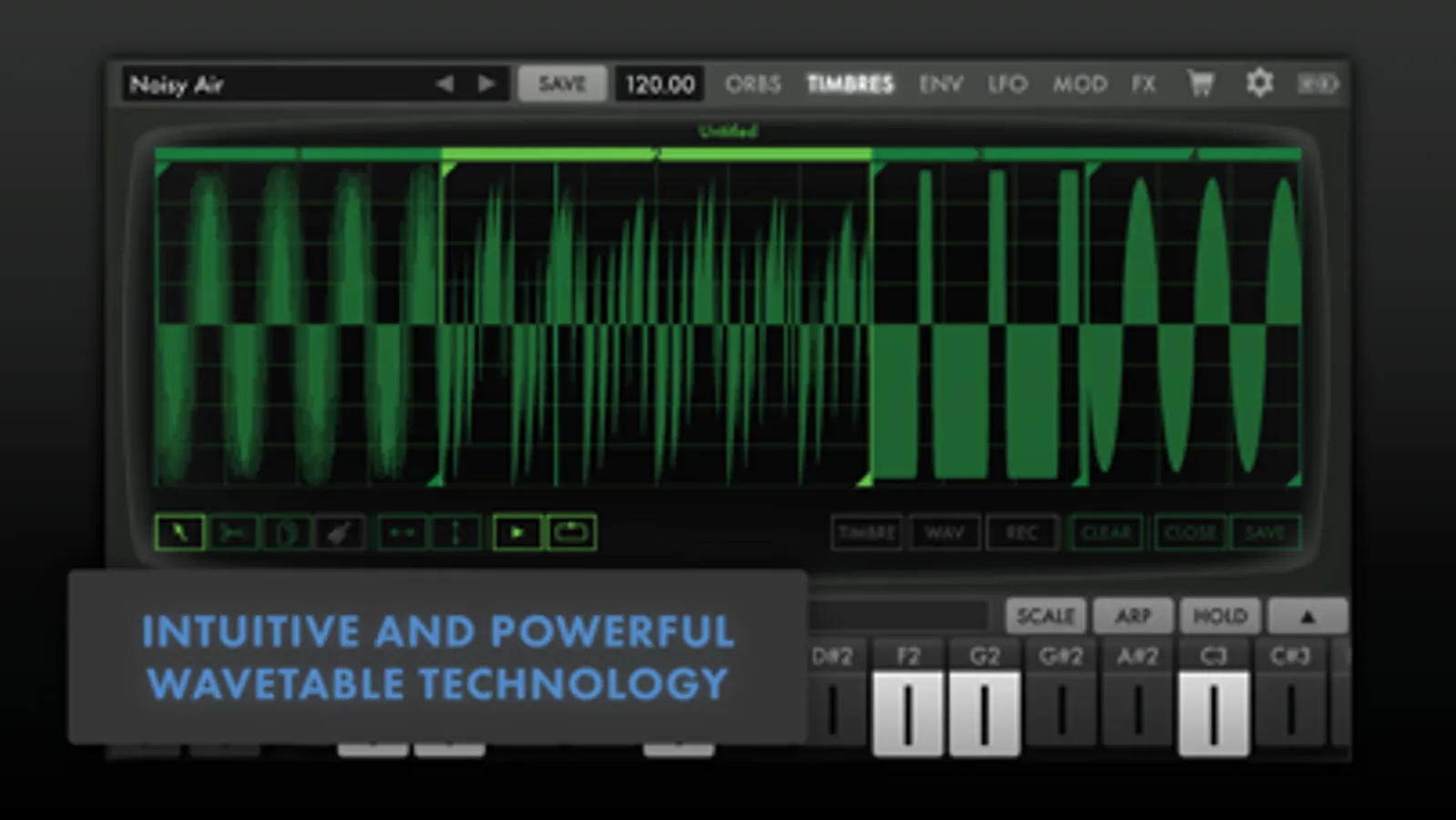 • Timbre Editor: Go beyond simple sample playback and build unique sounds that evolve in multi-dimensional space. Select from a wide variety of built-in timbres or customize your sound by recording your own timbres (or import your own WAV files).