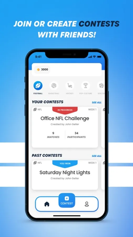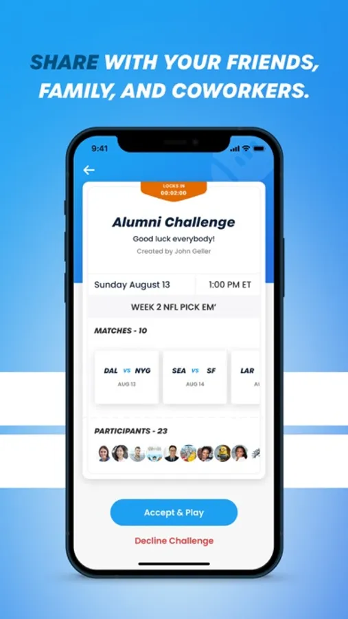 - Quickly join or create fun and simple pick em' games to share and compete with friends, family, and co-workers during live sports events, including NFL and NBA
