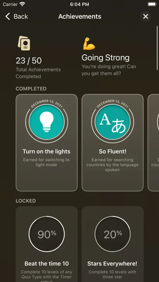 The more you play and discover countries the more achievements you will unlock, for a total of 50 achievements available!