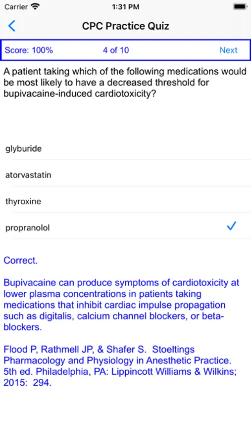For more than 15 years, Prodigy Anesthesia has been designing exams and study materials that have helped over 30,000 students pass boards and now that same experience is available on your iPhone to help you prepare for the CPC exam. CPC Prep contains 55 ten-question quizzes with complete rationales to help you brush up on everything you learned in school (but may have forgotten). Study anywhere you are!