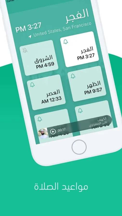 كما ويحتوي التطبيق على مميزات إضافية تشمل: مواعيد الصلوات الخاصة بكل بلد مع إمكانية الضبط اليدوي