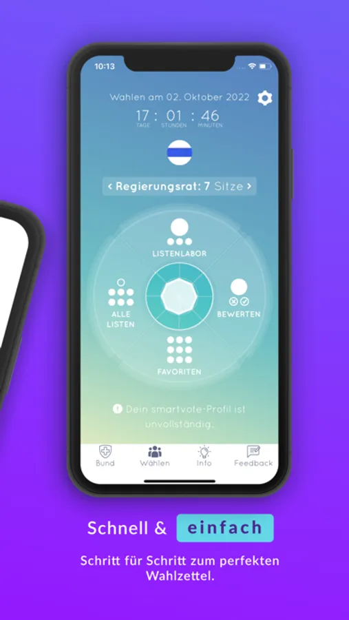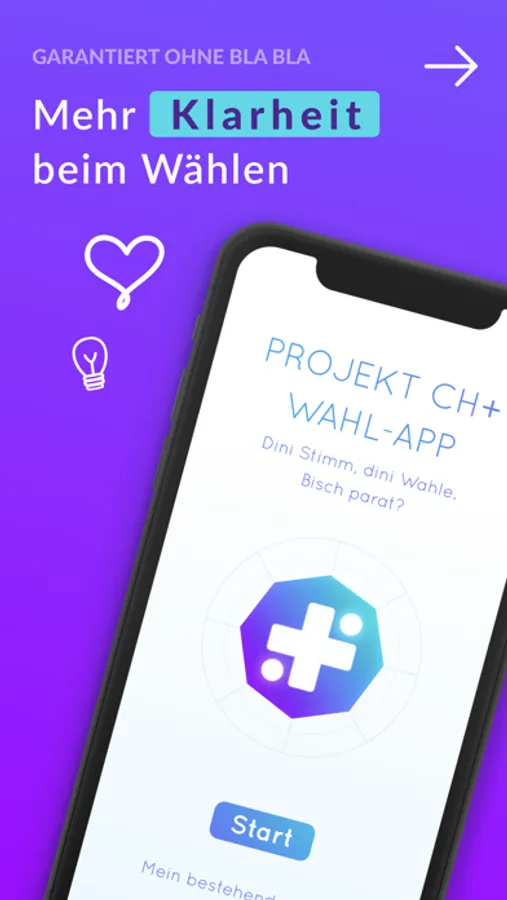 Die CH+App wird als Gemeinschaftsprojekt entwickelt. Sie hilft dir, die Kandidierenden zu finden, die am besten zu dir passen! Die einzelnen Funktionen kannst du Schritt für Schritt freischalten. Einmal freigeschaltet, kannst du sie jederzeit nutzen, um deine persönliche Wahlliste zusammenzustellen.