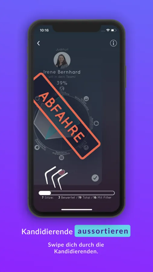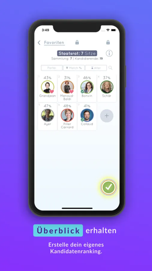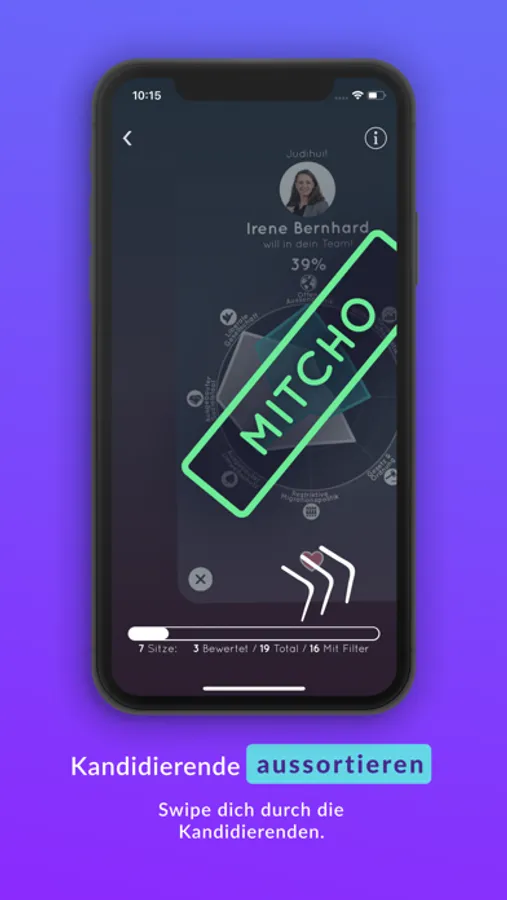 Swipe dich durch die Kandidierenden.