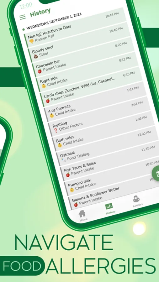Allows users to track parent and child's food intake, especially vital for breastfeeding families. The log also features symptom and stool input with picture uploads. This provides a seamless space for parents to easily look for reaction trends, track food trialling, and annotate days/times for food trialling passes and fails. All of this information is shown in an easy to read history tab or exported into an excel spreadsheet which can be sent to your medical provider.
