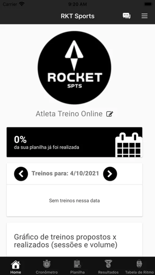 Aplicativo para os atletas da RKT Sports que conta com as seguintes funcionalidades: