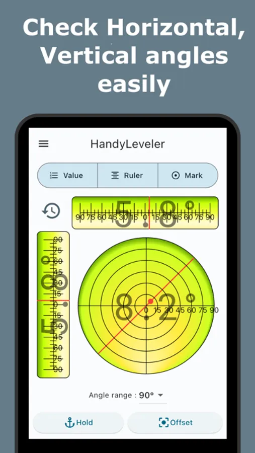 - You can check the horizontal angle, vertical angle, and total angle of your smartphone.