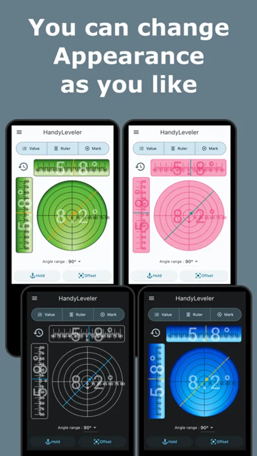 You can check the level with the bubbles that you are accustomed to, and you can check the angles with the numerical values unique to smartphones.