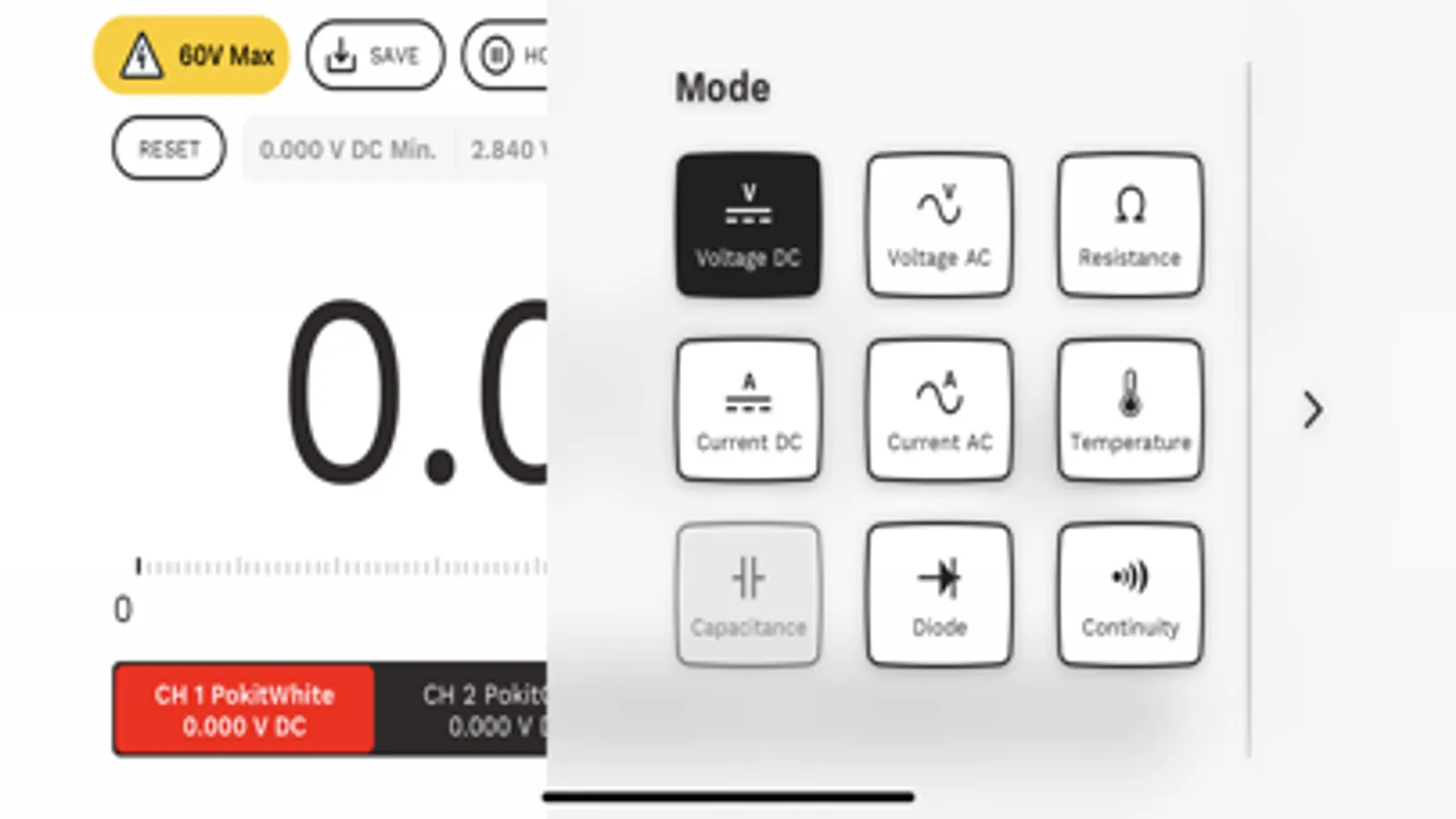Pokit devices connect wirelessly to your smartphone and app. Its amazingly easy to use. Simply touch to change modes and settings, and pinch and drag to pan and zoom waveforms. After using a Pokit, you'll wonder why all tools weren't designed this way!