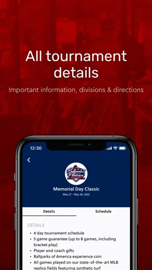 The Ballparks of America app will provide everything you need for your teams, athletes and fans for our tournaments.