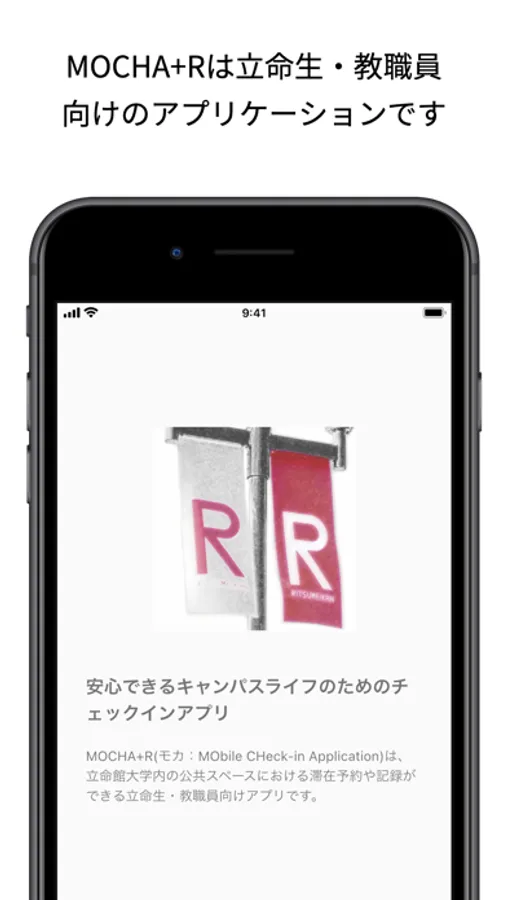 MOCHA+R (MObile CHeck-in Application) は、立命館大学内の公共スペースの滞在予約・記録ができる学生・教職員向けのチェックインアプリです。
