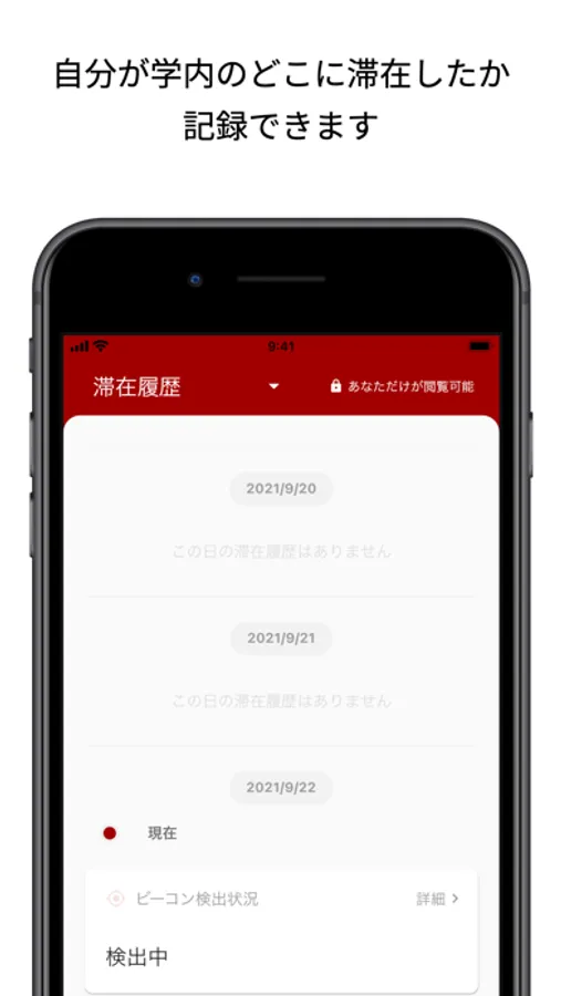 * キャンパスに設置したBluetoothビーコンから発せられる信号を、MOCHA+Rを有効化したスマートフォンが受信することで、キャンパス内での滞在情報が記録されます。