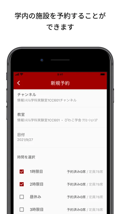 * 予約機能:教室や図書館の利用予約、教室のコンセント数確認
