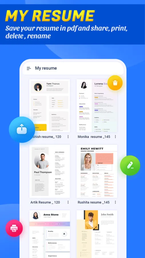 In just a few minutes, you can produce a professional resume or curriculum vitae (CV Maker) for job applications using this resume generator app