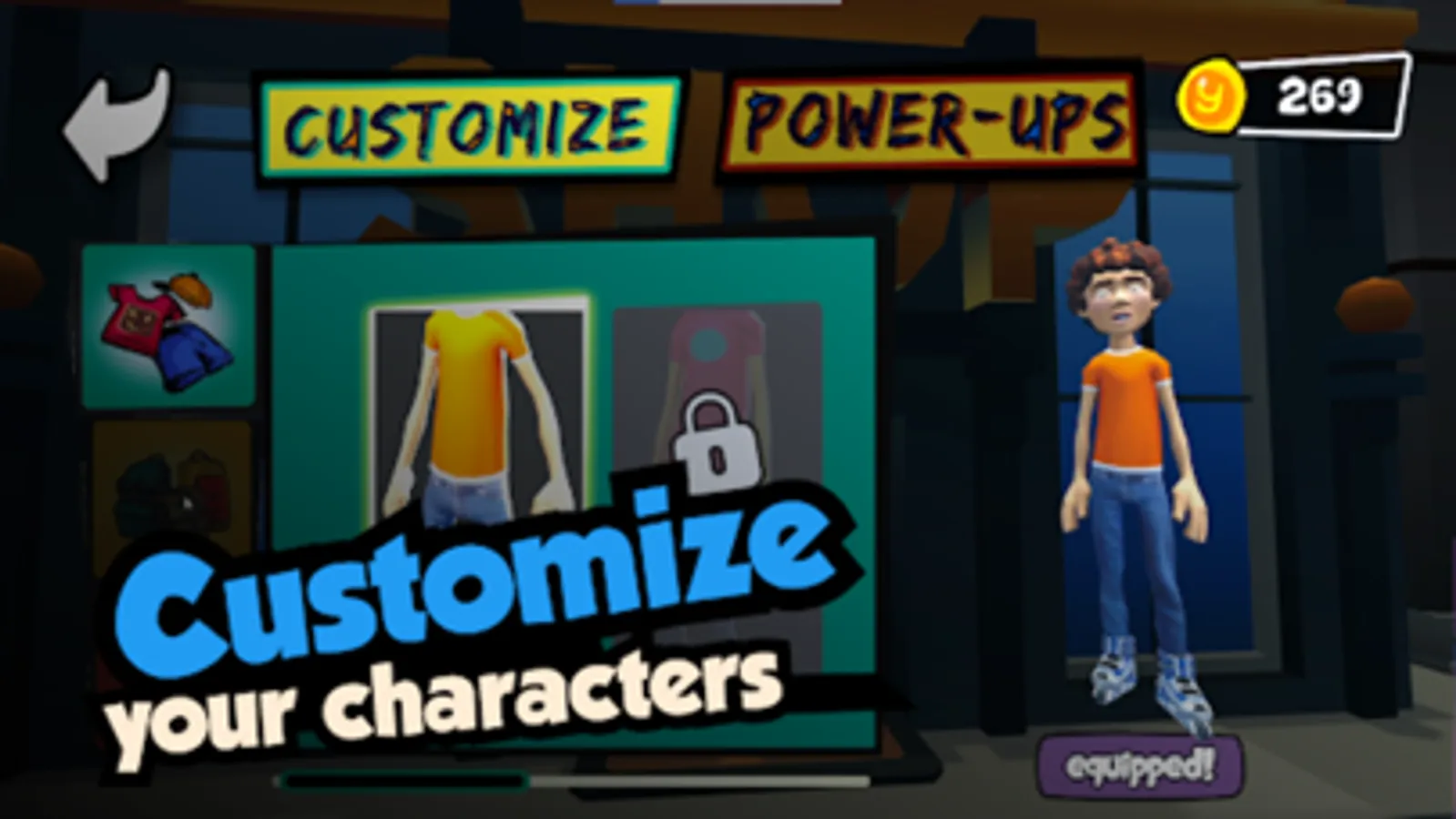 Pick your favorite representation between the brother-sister duo and with the fitness points earned, customize their Skates, accessories or get them a totally new dope look, that defines your swag. In addition, visit the shop to Upgrade power-up durations or Customize your accessories such as outfits, backpacks, and trails.