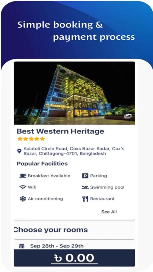 This app, in combination with the Associated Platforms, acts as an online hotel reservation system which specializes in finding the best accommodation in hotel, motel and other similar properties in Bangladesh, and securing the lowest room rates. The MTG Platforms are owned by Red Leaf Tours & Travels Limited. Our aim is to make it easier for you to experience Bangladesh, by offering the country's best places to stay and greatest places and attractions to visit in the most convenient way.