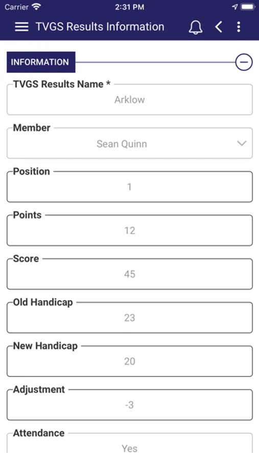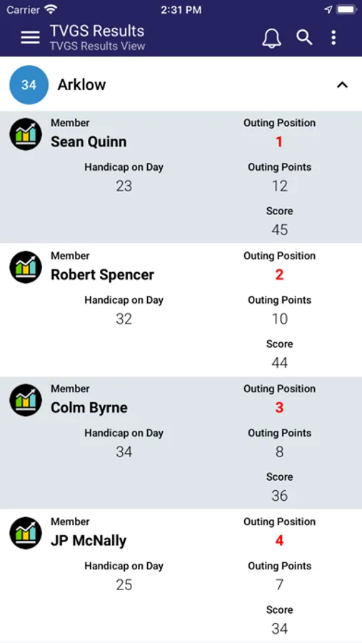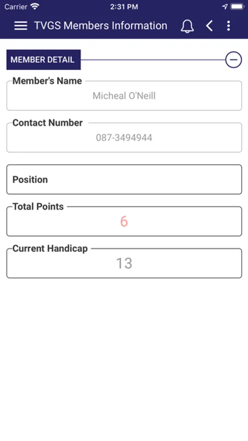 A leader board is also available providing members with instant access to who is in contention for the coveted Player of the Year and the history of how they played at each outing.