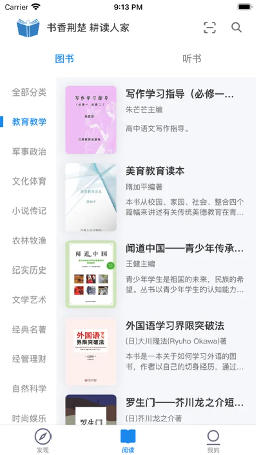 “书香荆楚”数字农家书屋,助力于乡村振兴,推动农家书屋深化改革创新、提升服务效能,服务于新时代新农民。