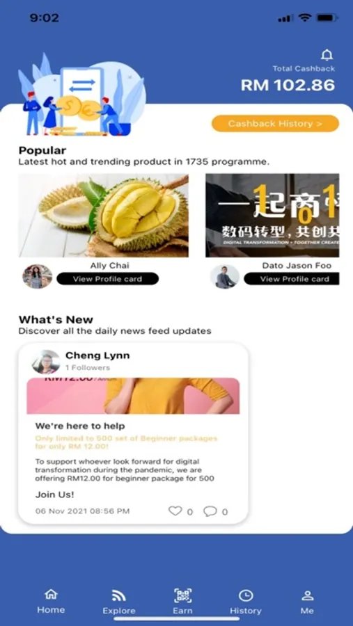 17U+ users can earn and spend cashback when spending at the participating 17B+ business merchants.