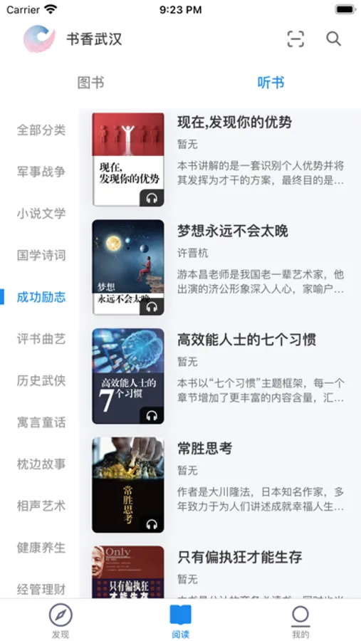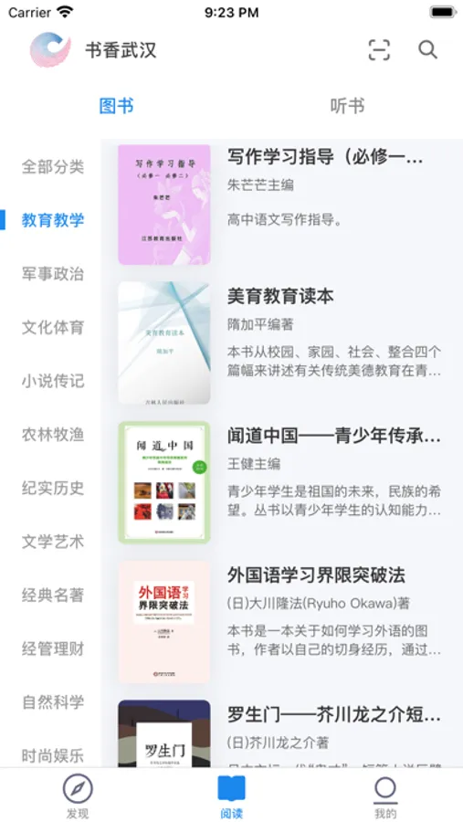 “书香武汉”数字农家书屋客户端,采用移动互联网、人工智能、大数据技术打造。是中共武汉市委宣传部“全覆盖建设数字化武汉市农家书屋”平台的配套服务客户端,配备电子图书7万册、有声读物3万集。可依托平台开展“百姓点单”选书、荐书活动。