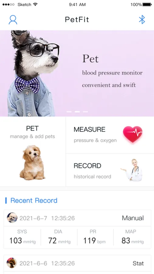 Petfit APP is a pet vital sign monitoring APP. It integrates pet vital sign measurement, Bluetooth data transmission, data storage review, data analysis, professional pdf format report, and the report supports the entry of pet hospital information and other functions. By recording the pet's inspection data, the doctor can analyze the pet's historical data, and the customer can understand the pet's health status.