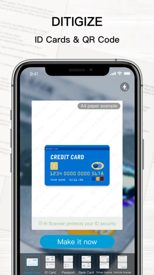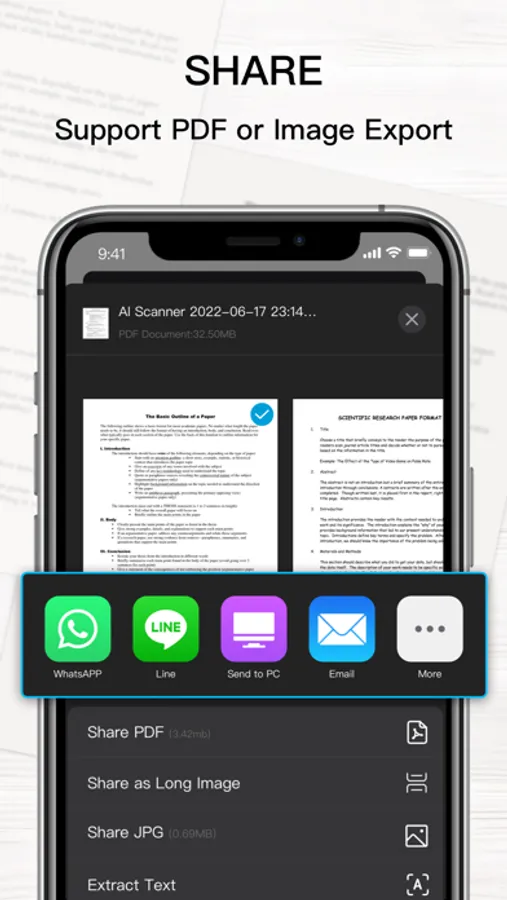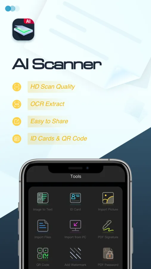 You can set the standard paper size, add watermarks and signatures, create mosaic and filter effects with one click, and quickly generate and share PDF files. And AI Scanner supports OCR, recognize text accurately and quickly from pictures; it also supports QR code and barcode scanning features with fast speed.