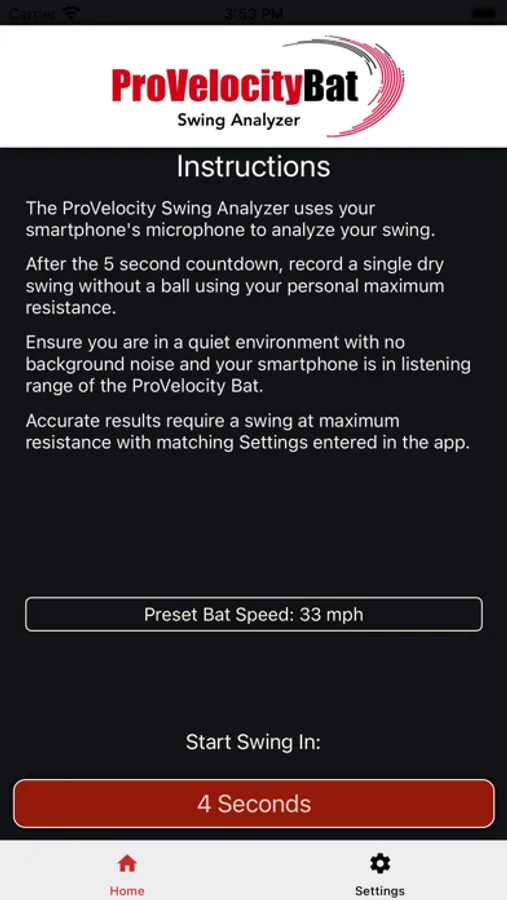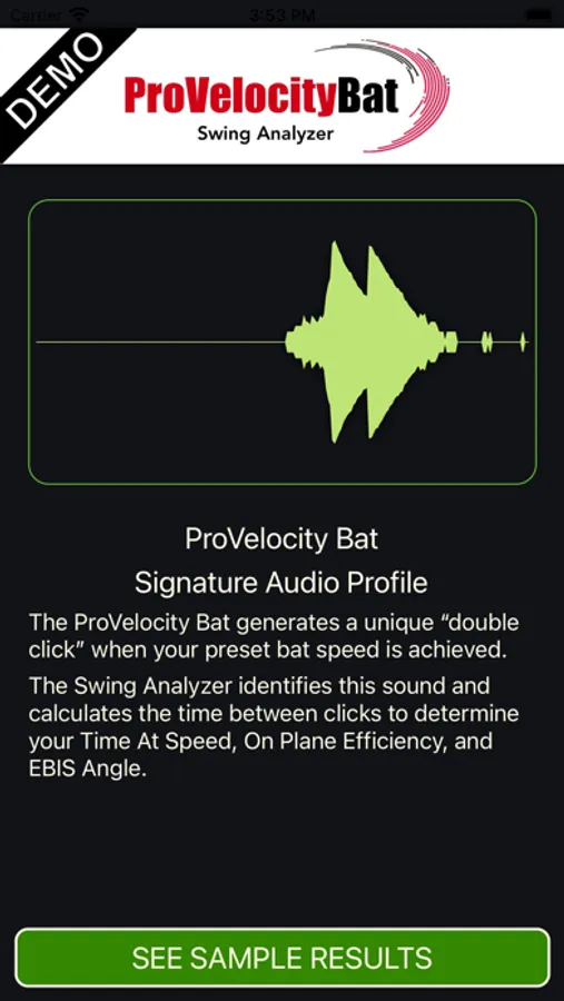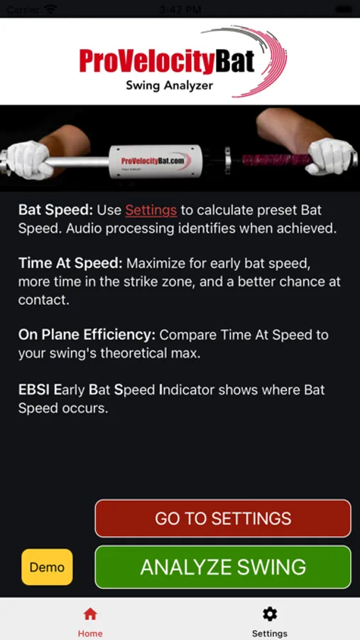 Use the ProVelocity Bat Swing Analyzer to track your improvement as you train with the ProVelocity Bat to increase Exit Velocity, gain Early Bat Speed, and increase your time in the strike zone. On Plane Efficiency and Early Bat Speed indictors advise you when to increase the ProVelocity Bat's resistance settings as your bat speed and swing mechanics improve.
