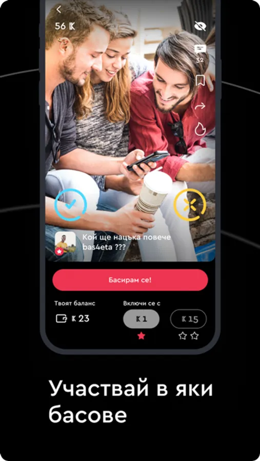 Раздвижи целия си социален кръг и стани известен в цяла България, а защо не и в целия свят. Измисли и качи най-креативните и готини предизвикателства, които ще достигнат до милиони хора. Виж какви са предположенията им, какви са коментарите им, и дали могат да отгатнат изхода на твоето басче.
