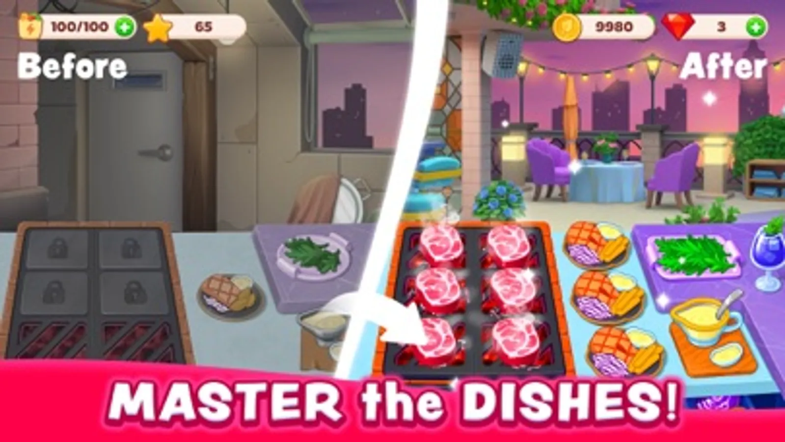 Play as a virtuoso chef in this cooking game, renovate restaurants & cafes!