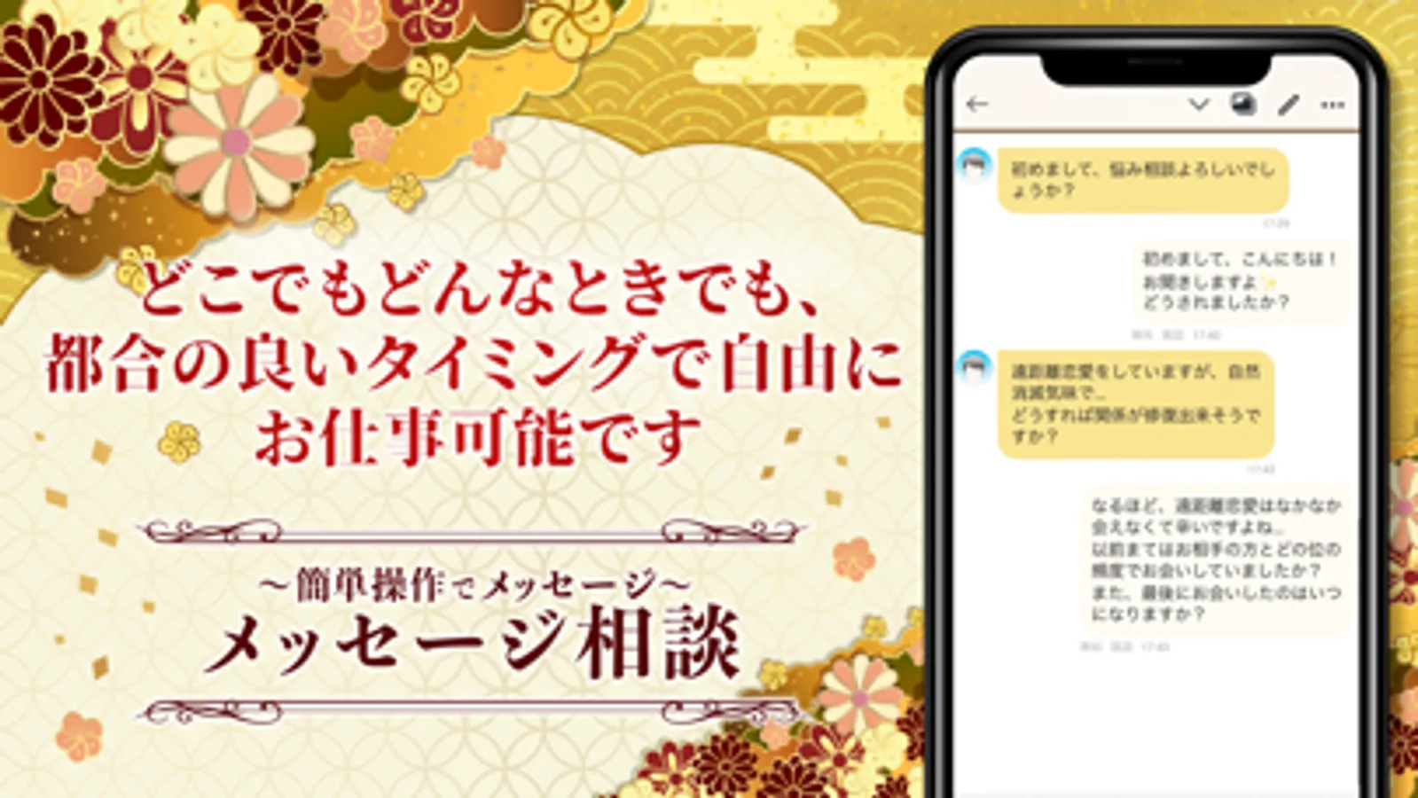 当アプリでは、それぞれのカウンセラーの得意とするジャンルに関する悩みを抱えたユーザーに対し、チャットにて受信した相談へのカウンセリングを行うことができます。