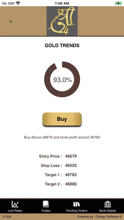 The app has a special feature of predicting GOLD TREND using various analysis tools.