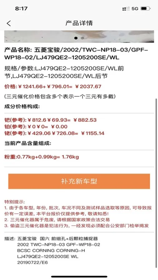 一款专注于三元催化器报价的软件,型号齐全,实时根据钯铂铑金价波动,更新数据。现有5000余款三元催化数据,并会定期增加复核数据,搜索方便快捷,适合汽修、汽配、废品回收、再生能源行业从业者使用的一款小工具。