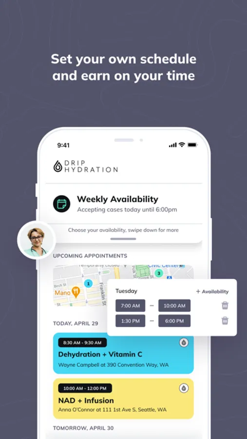 Providing patient care with NomadMD is an easy way to leverage your healthcare expertise to earn money when you want. Set your weekly schedule or turn on availability in a moment’s notice.