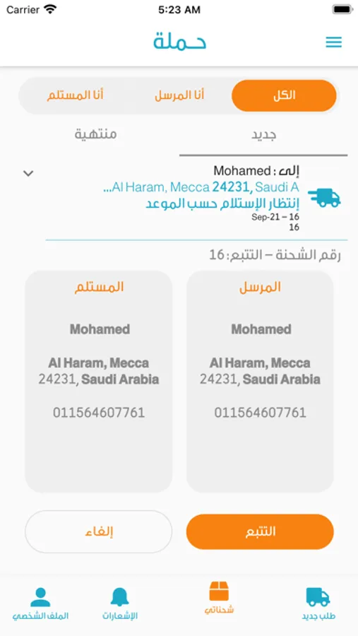 حملة تطبيق يساعد على توصيل الحمولات من مكان الى اخر