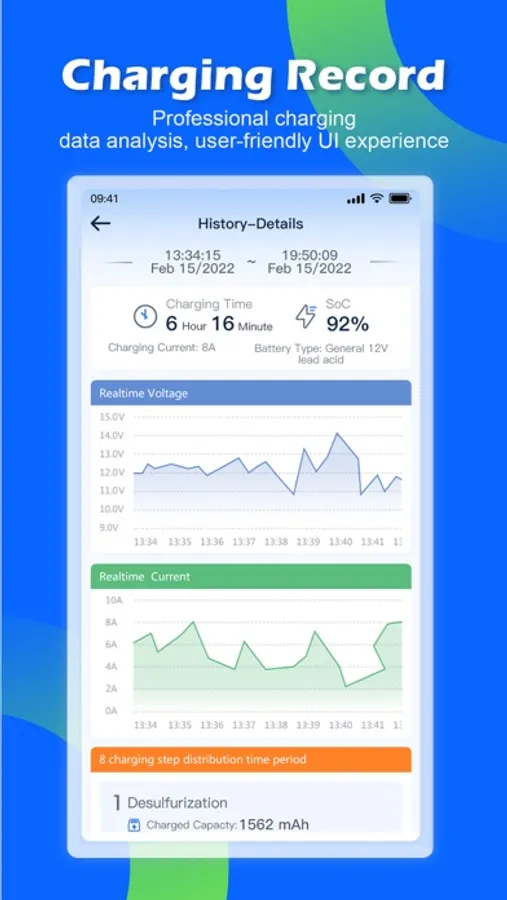 * Automatically generate charging history report, check the battery charging performance at any time.