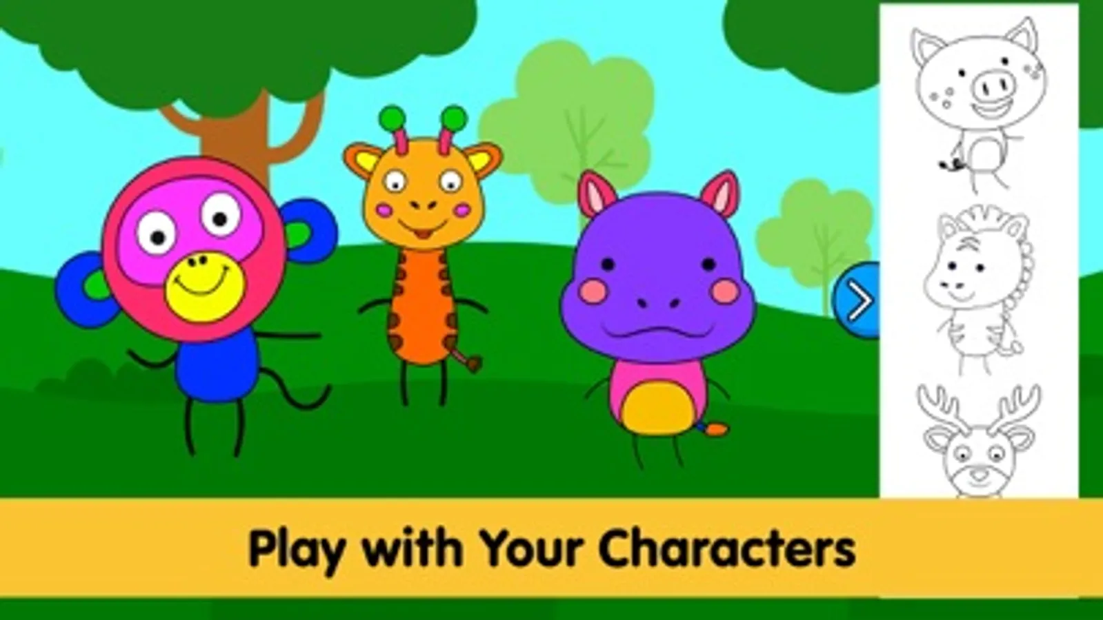 Coloring pages included in this fun coloring app for kids are: