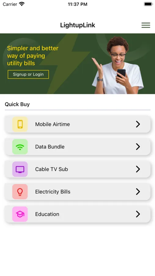 LightupLink offers a payment service where customers can easily pay for their utilities through their smart devices irrespective of the time and location. Our platform provides 24hrs service to ensure our customers have smooth user experience during their transactions.