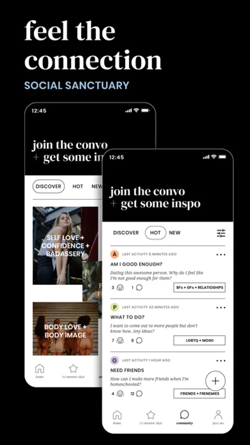 + THE SOCIAL SANCTUARY: An anonymous & inclusive community for you to vent, get inspo, feel connected & support others.