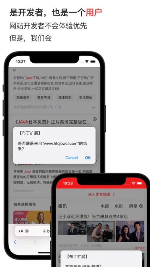 布丁扩展致力于提供更好的手机端网站的浏览体验。