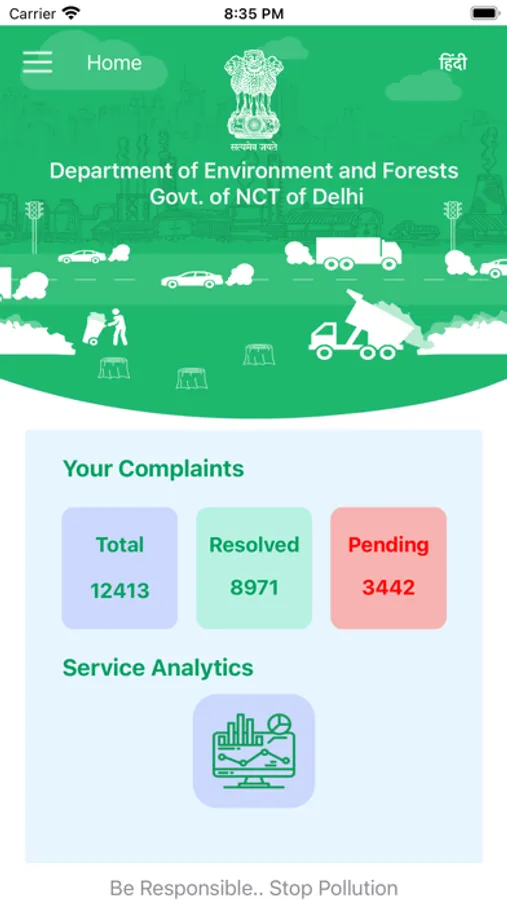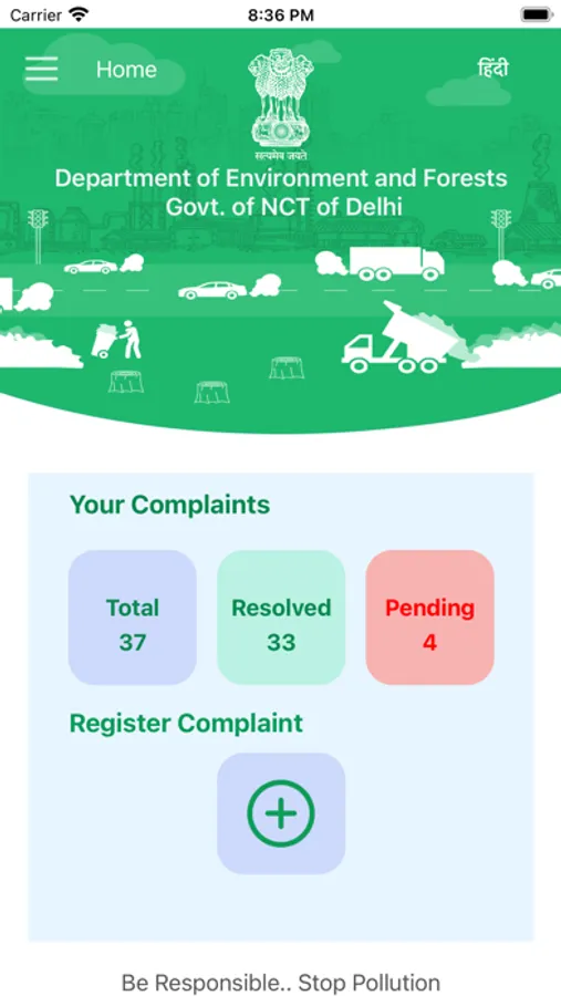 It allows citizens to identify and report dispersed sources of air and noise pollution in the National Capital. The App then assigns the complaints to the concerned department(s) for resolution. Citizen may lodge complaints in following simple way-