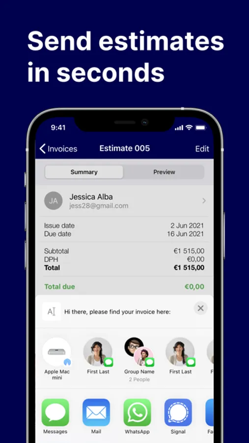 - Easily and quickly create and send professional estimates to your customers.