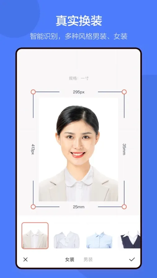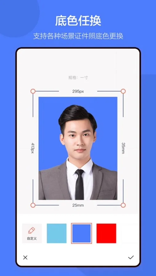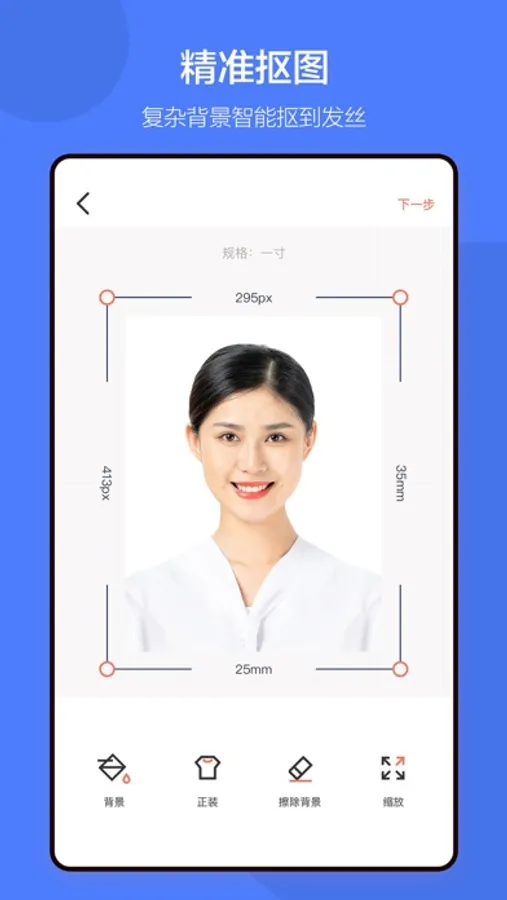 Intelligent image capture: powerful image capture algorithm, one click image capture to remove background; 6 types of regular ID photos with one click background change to meet daily ID photo needs.