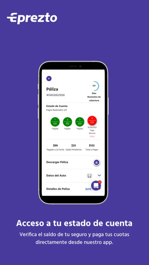 Ten acceso al estado de cuenta, coberturas y beneficios de tu seguro de auto de Eprezto.com.