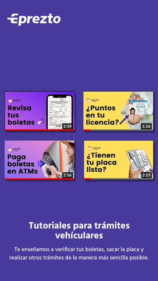 -Mira nuestros tutoriales que te enseñan a realizar trámites vehiculares como verificar tus boletas, sacar tu placa y más