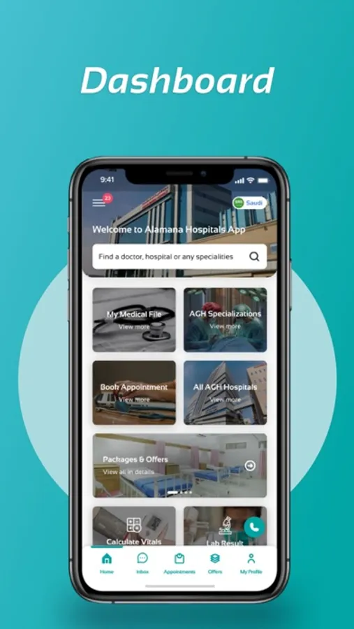 Almana General Hospital's mobile application provides patients access to view their medical records, book doctor’s appointments, book a quick check-in appointment, view their medication history, request medication refills, view their lab and radiology results, and more.