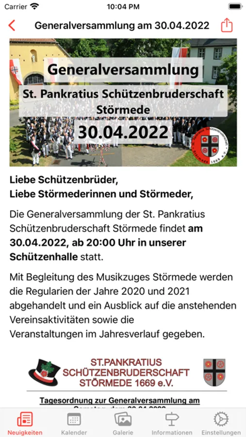 Die offizielle App der Sankt Pankratius Schützenbruderschaft aus Störmede!