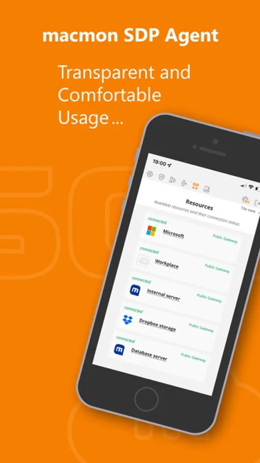 With full transparency, the macmon SDP agent provides a highly secure authentication to the macmon SDP controller in order to check the identity of the user as well as the device and its security status. The system can control the resources in the local network, in the private cloud and in the public cloud.